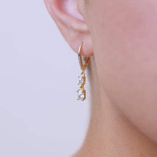 Features: 1.22" height earring, 1.1mm, 3*5mm, 4*6mm CZ stones, Lead & Nickel Free, French clip