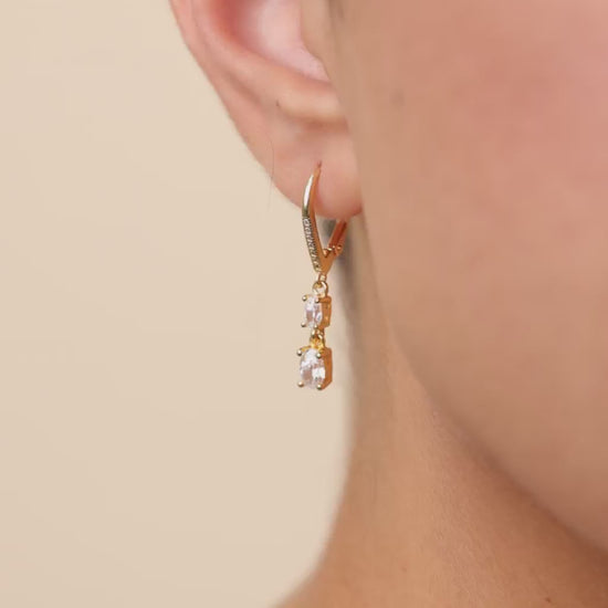 This duo keeps things simple: a stacked pair of oval-cut Hearts & Arrows CZs, set in sterling silver with a smooth French clip closure. Light on the ear, strong on detail.