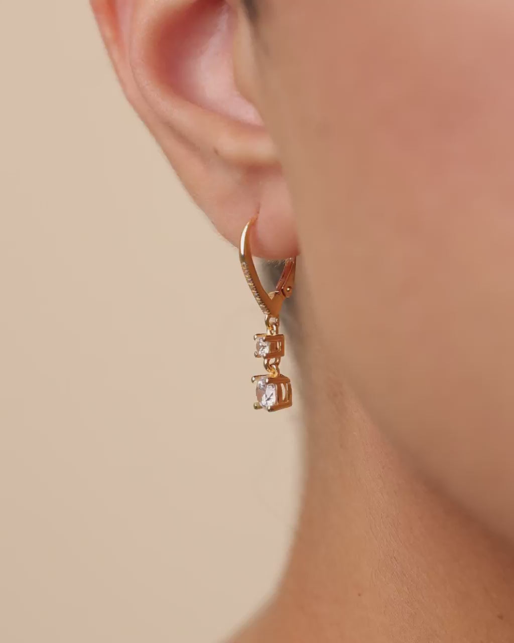 Features: 1.08" height earring, 1.1mm, 3mm, 5mm CZ stones, Lead & Nickel Free, French clip