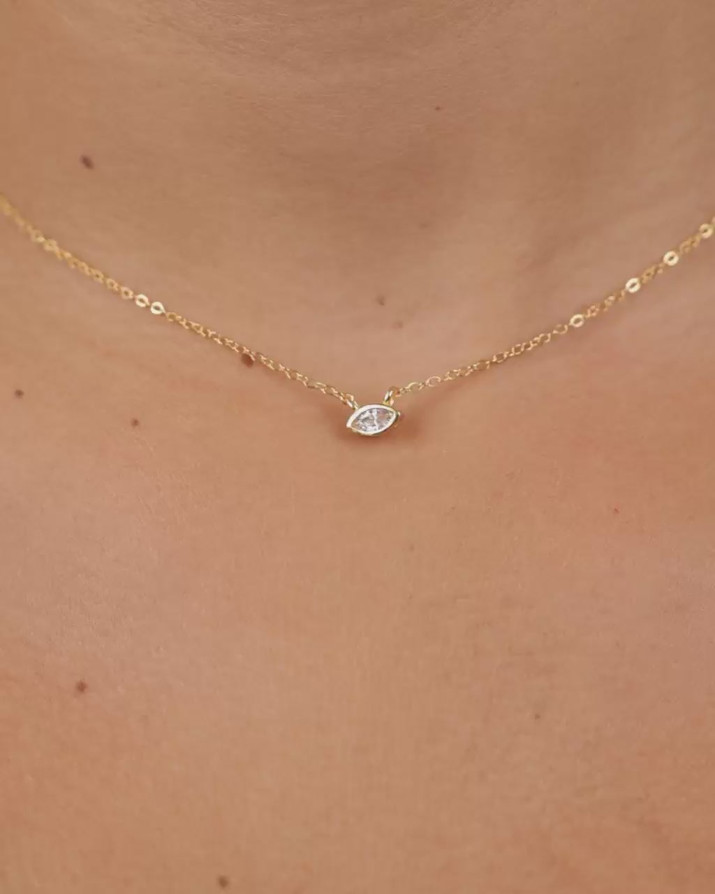The Marquise Bezel Set Pendant is low effort, high impact. With a Hearts & Arrows CZ in a sleek sterling silver bezel, it’s the kind of pendant that does all the talking—so you don’t have to.