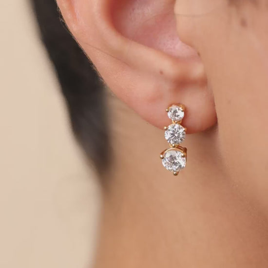 Features: 0.7” drop, Round CZS graduating in size - 4.5mm, 5.5mm, 6.5mm, Post backing, Lead & Nickel free
