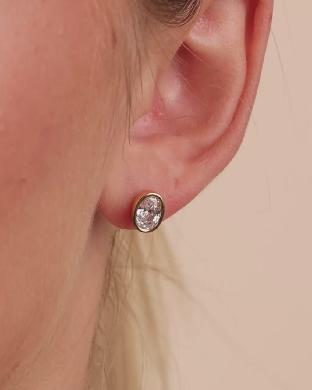 Simplicity with a bold twist. These studs feature Hearts & Arrows Oval cut stones for insane brilliance, they catch the light from every angle. Wrapped in a sleek, bezel setting and set in non-tarnishing sterling silver, they’re the perfect mix of classic and modern.