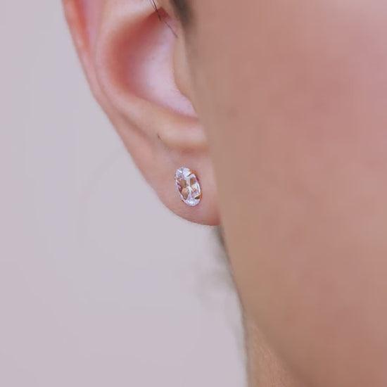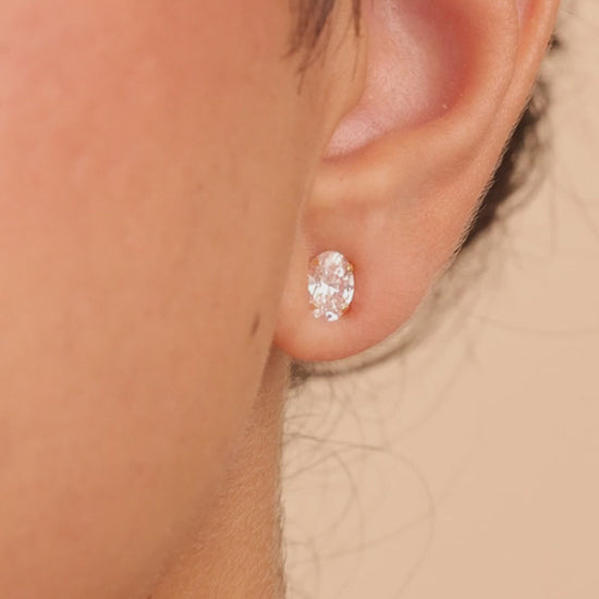 These sterling silver studs are anything but basic. Featuring Hearts & Arrows Oval cut stones for insane brilliance, they catch the light from every angle. Held together with a secure prong setting, set in sleek, non-tarnishing sterling silver, they’re the perfect mix of classic and modern.