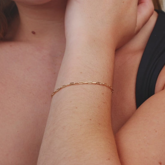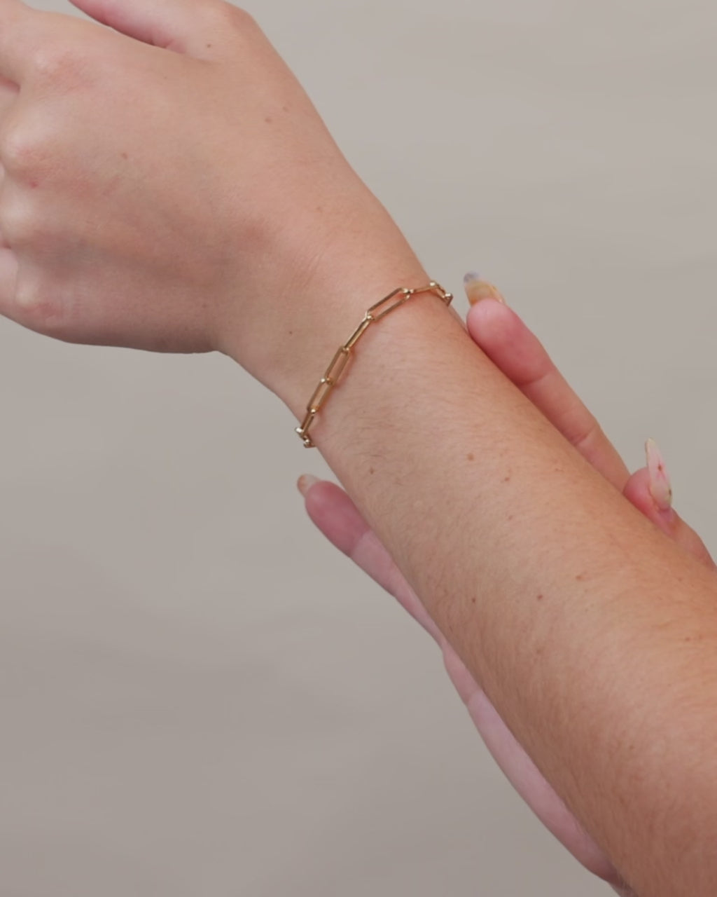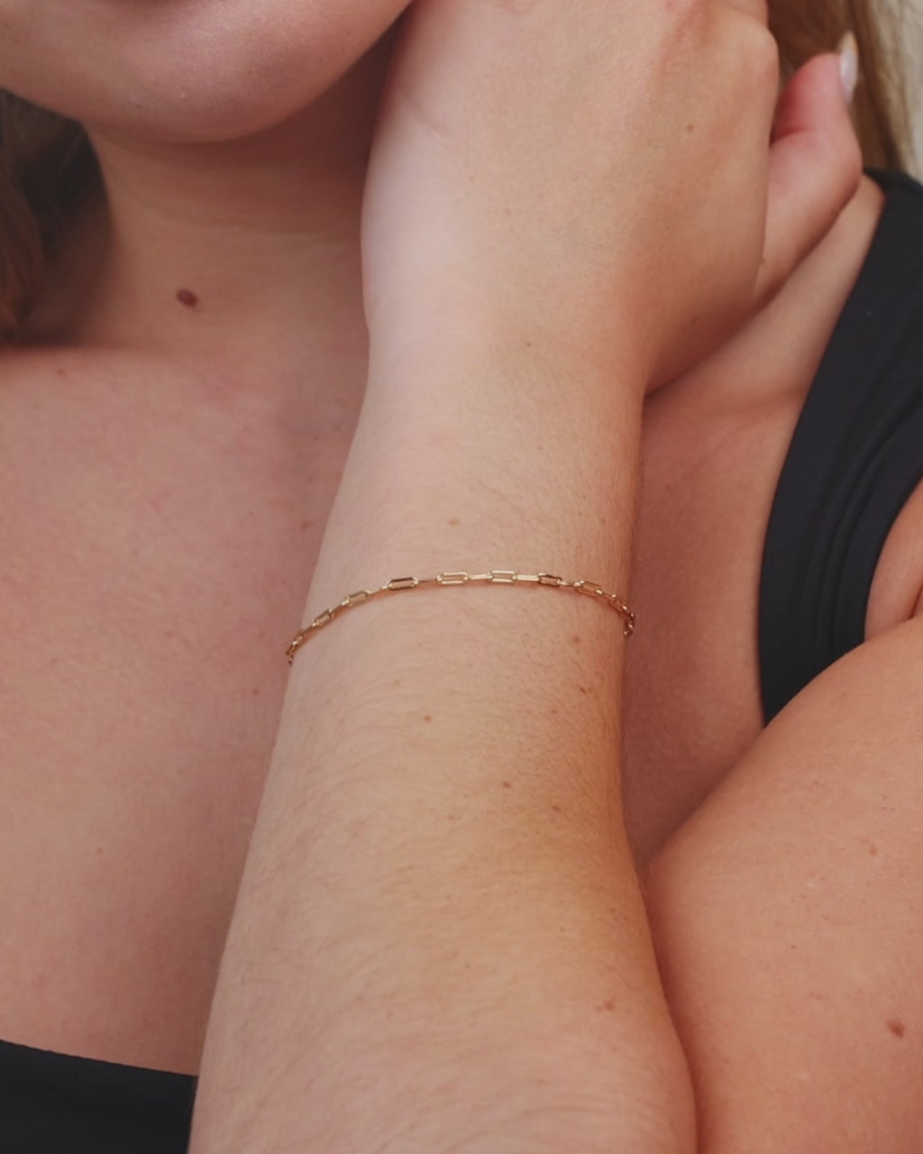 This slimmed-down take on the paperclip chain features fine, minimalist links for a more delicate feel. Subtle on its own, seamless in a stack—it’s the kind of piece you’ll forget you’re wearing.