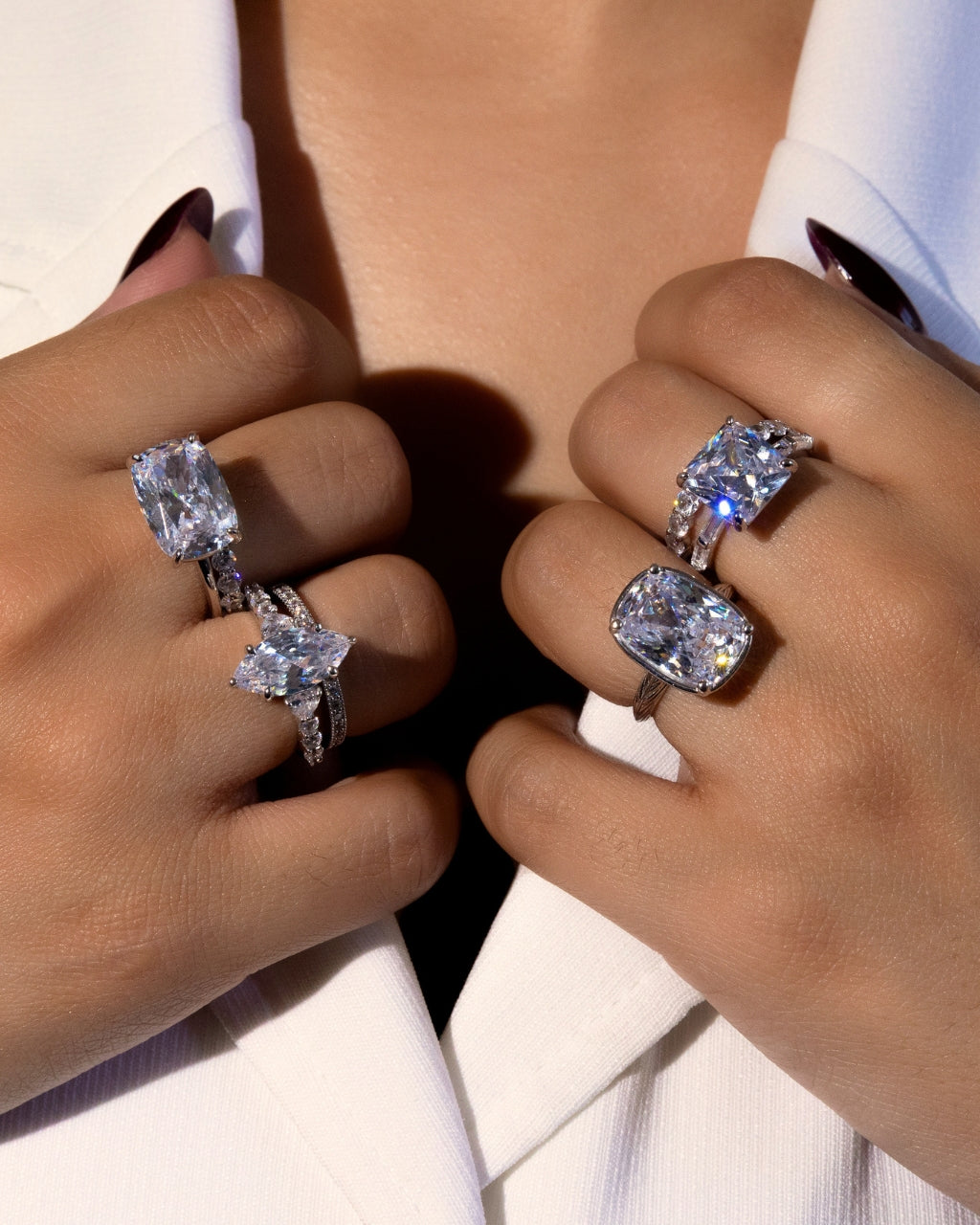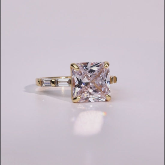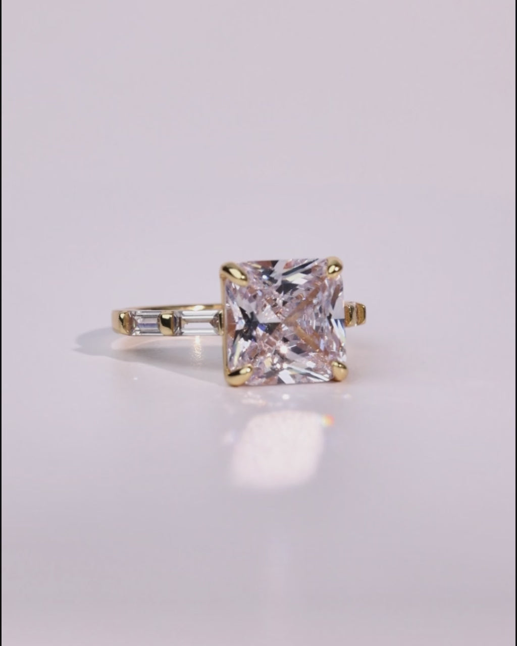 Features: 2.2 mm Band, 10 mm x 10 mm Square Cut Clear CZ, 2.5 mm x 5 mm Emerald Clear CZ, Lead & Nickel Free
