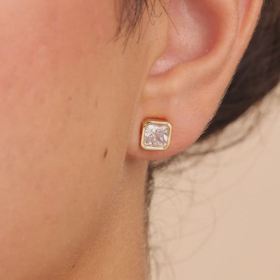 Simplicity with a bold twist. These studs feature Hearts & Arrows Radiant cut stones for insane brilliance, they catch the light from every angle. Wrapped in a sleek, bezel setting and set in non-tarnishing sterling silver, they’re the perfect mix of classic and modern.