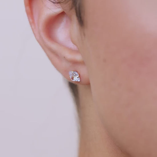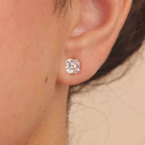 These sterling silver studs are anything but basic. Featuring Hearts & Arrows Radiant cut stones for insane brilliance, they catch the light from every angle. Held together with a secure prong setting, set in sleek, non-tarnishing sterling silver, they’re the perfect mix of classic and modern.