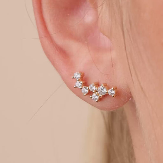The Sterling Silver Round Cut Cluster CZ Crawlers are tiny, but they know how to make an entrance. With multiple round Hearts & Arrows CZs that go from bold to barely-there, they trace your ear with just enough edge to keep things interesting.