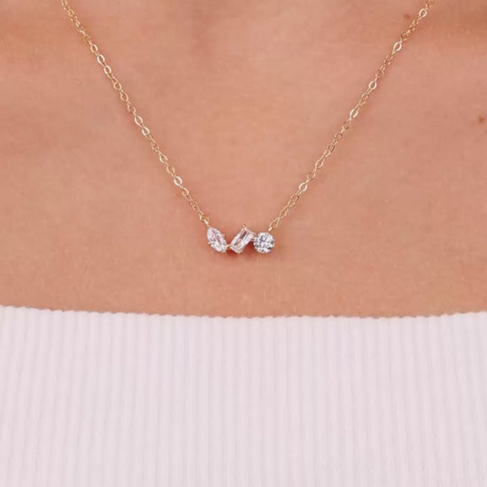 No need to choose just one. The Trio Cut Pendant brings together a round, emerald, and marquise Hearts & Arrows CZ, each set slightly askew for a look that feels intentional but never too polished. An easy piece to wear on repeat.