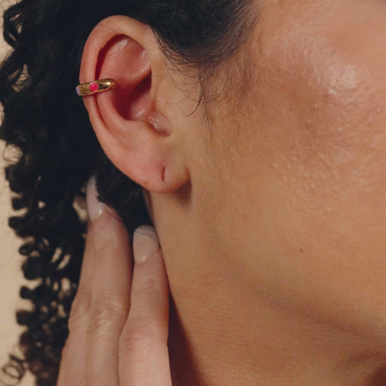 This luxurious set of two sterling silver ear cuffs is the perfect addition to any jewelry collection. The beachy enamel design adds a touch of elegance and sophistication to any look. Enhance your style with these exclusive ear cuffs.