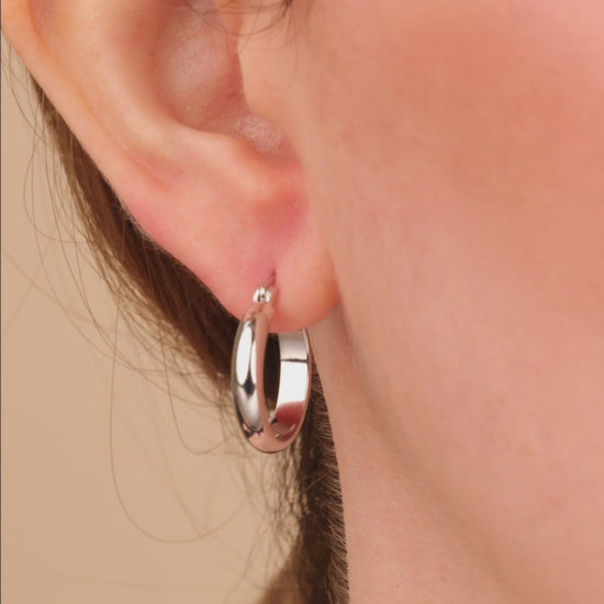 Clean, polished, and made for daily wear—these classic hoops are the definition of an essential. Their minimalist curve delivers timeless shine, while the lightweight feel makes them a no-brainer for every day. Style them with denim, tailoring, or layered studs.