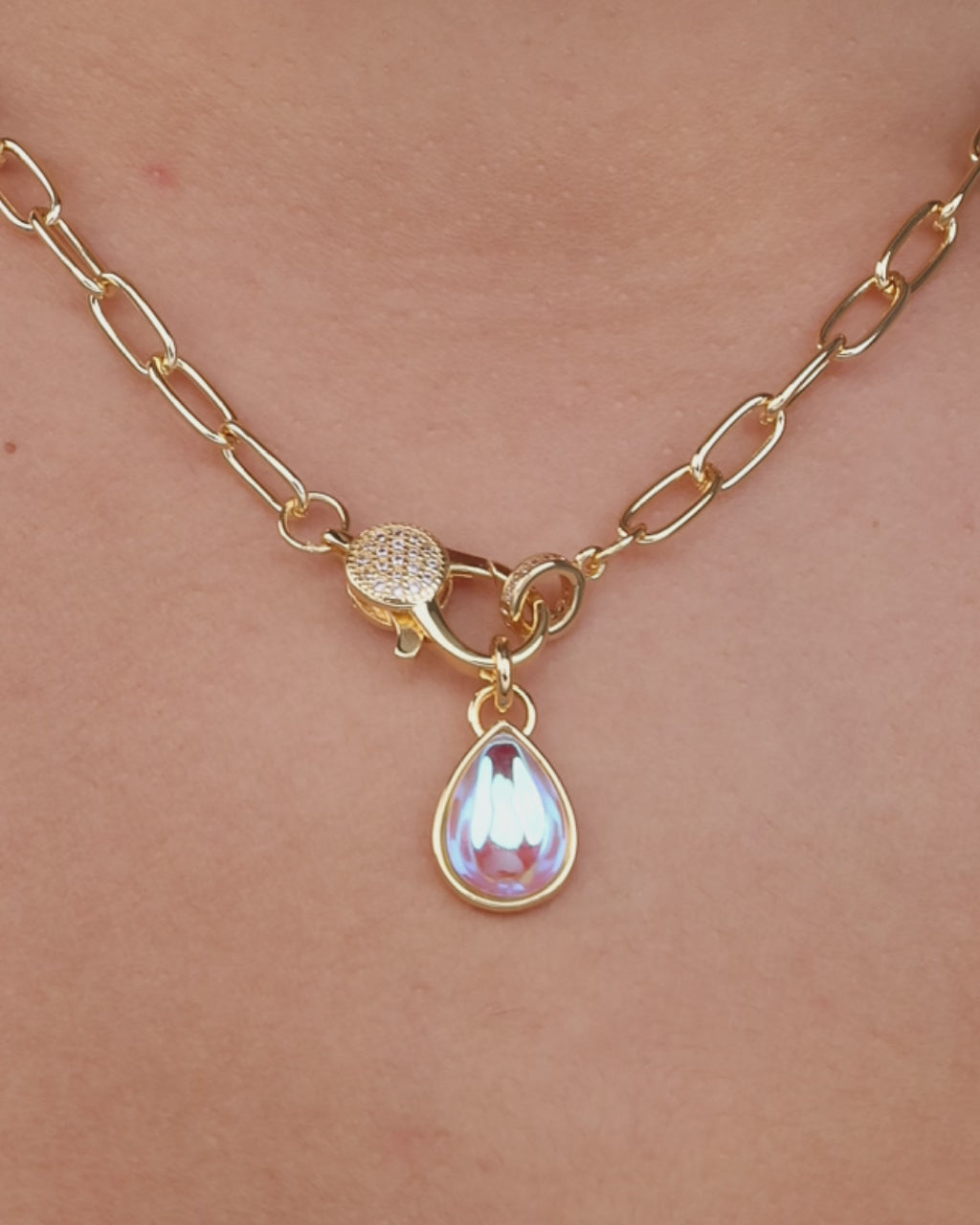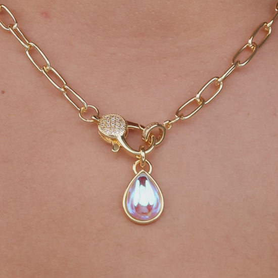 Elevate your ensemble with our Tay Chain Necklace. Adorned with sparkling CZ stones and a luminous moonstone charm, this elegant piece offers versatility with its removable charm and on-trend paperclip chain. A must-have for the sophisticated and exclusive individual.
