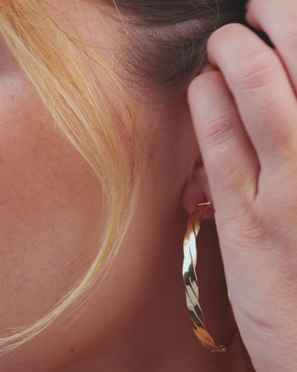Your everyday statement. These high-shine twisted hoops bring bold texture and a sculptural edge—perfect for elevating the simplest look.