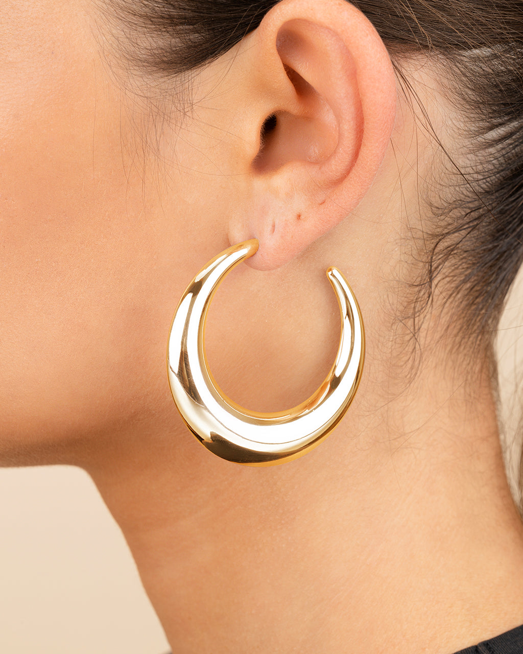 Turn heads no matter where you are! These sleek open hoop earrings are sure to add shine to all of your favorite looks. Available in gold and silver tones.