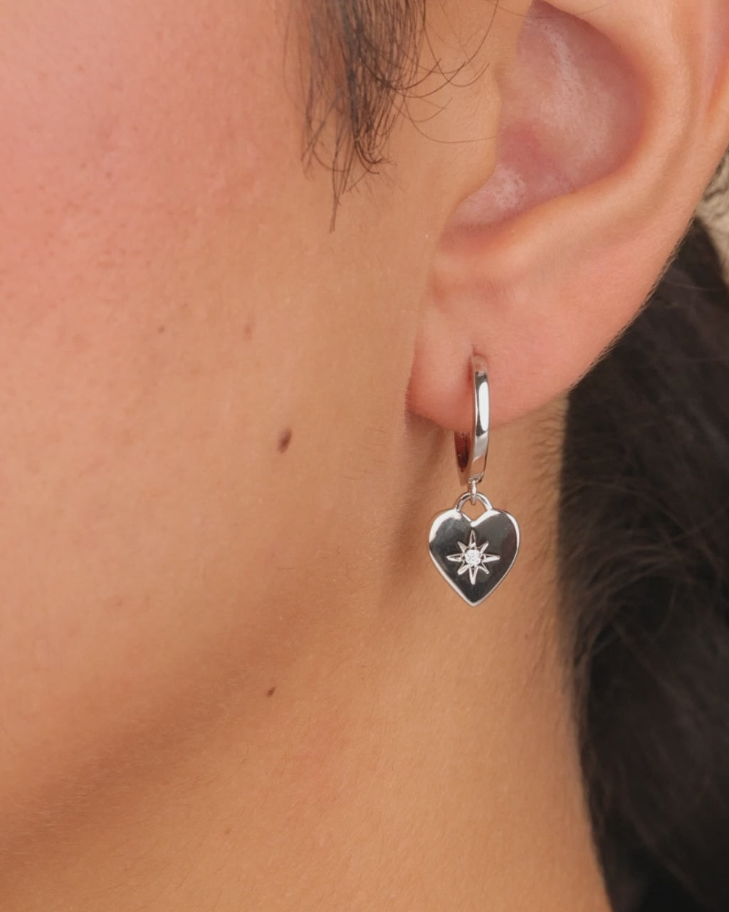 A delicate nod to vintage charm. These mini heart drop hoops feature a starburst CZ center that catches the light in just the right way. Sweet on their own or paired with other dainty styles for a layered look.