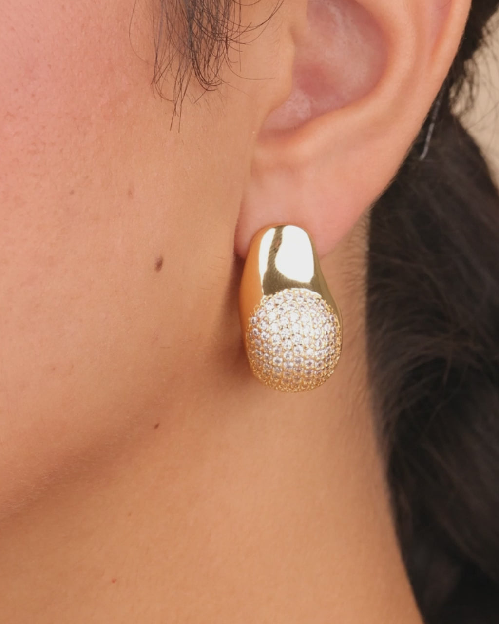 Introducing the Wesley CZ Statement Huggie Hoop Earrings. Embrace sophistication with these half cz, half polished huggie hoops. Effortlessly elevate any outfit with these elegant and exclusive earrings. Perfect for adding a touch of luxury to your everyday look.