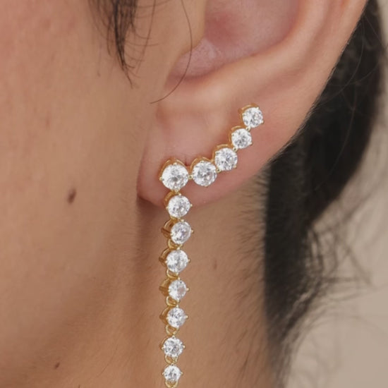 Embrace elegance with our Sterling Silver Ziggy CZ Crawler Stud Earrings. The stunning CZ studded crawler delicately climbs up the ear, while the drop stud adds a touch of sophistication. Elevate any look with these exclusive, luxurious earrings. Experience the perfect balance of art and fashion.